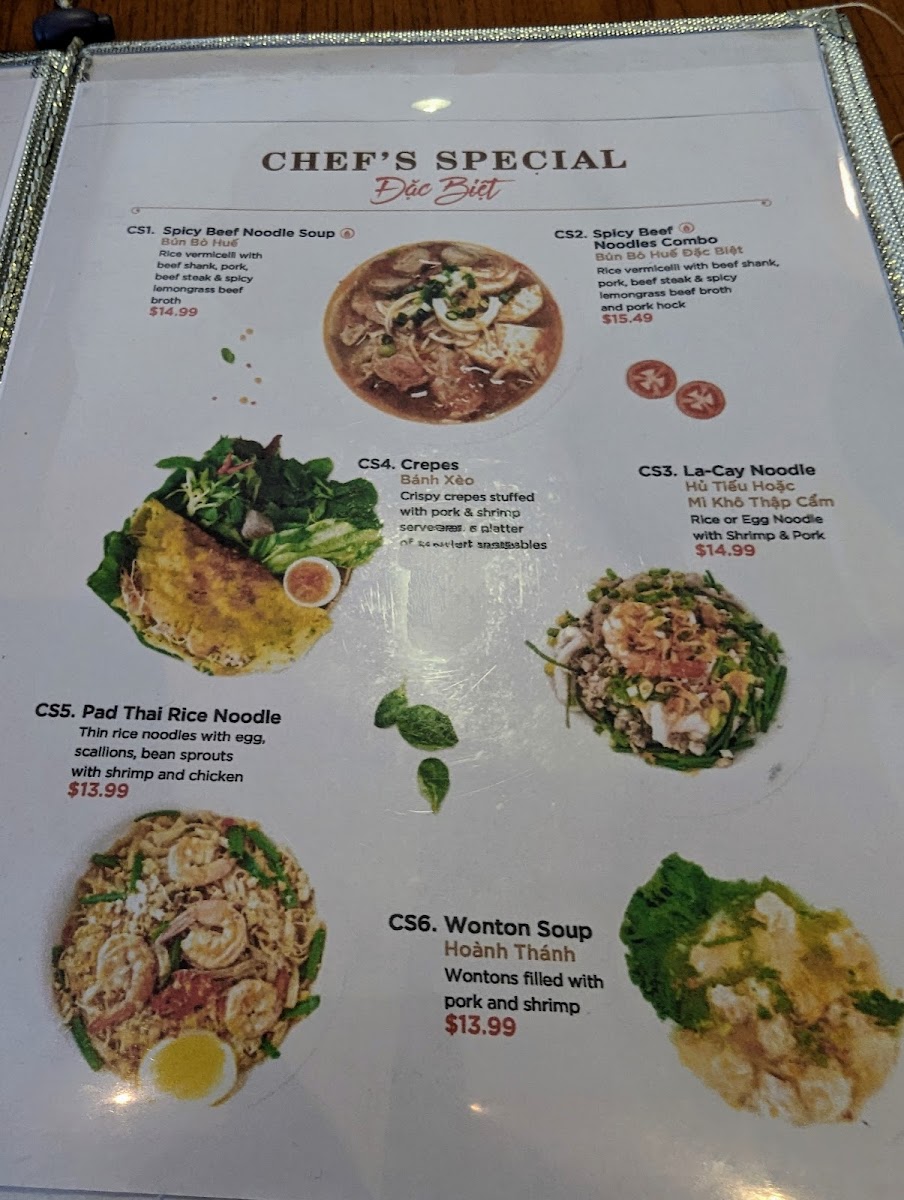 Vegetarian options, such as Vegetarian Pho, highlight the restaurant's versatility, ensuring everyone finds something to enjoy. The Spicy Beef Noodle Soup captivates with its lemongrass-infused broth and hearty ingredients, while appetizers like Shrimp Spring Rolls are a vibrant start to any meal.